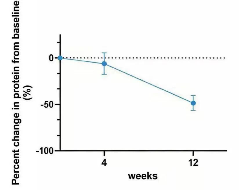 结果显示,治疗12周后,患者蛋白尿水平降低从0.964 g/d降至0.566 g/d,平均降幅48.46%(P<0.001)(图1),eGFR保持稳定,且无治疗相关不良事件。在所有预设亚组中(年龄[截断值45岁]、eGFR[截断值60 ml/min/1.73m²]、蛋白尿[截断值2 g/d])疗效一致。