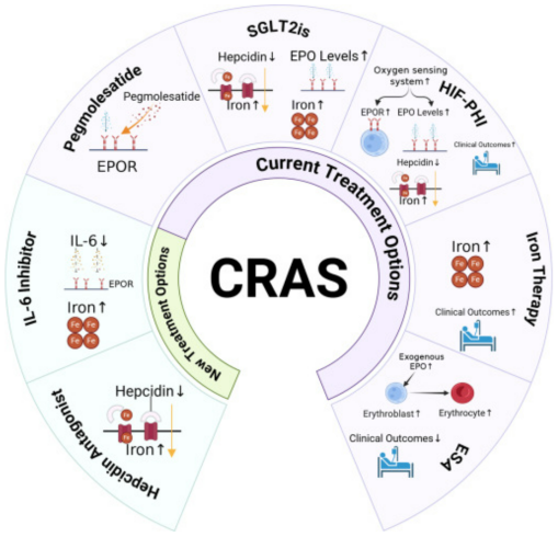 图2. 心肾贫血综合征(CRAS)的现有与新型治疗策略概览[26]