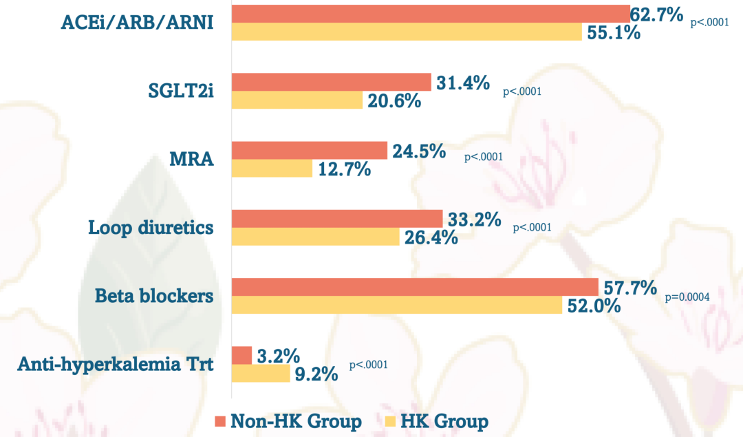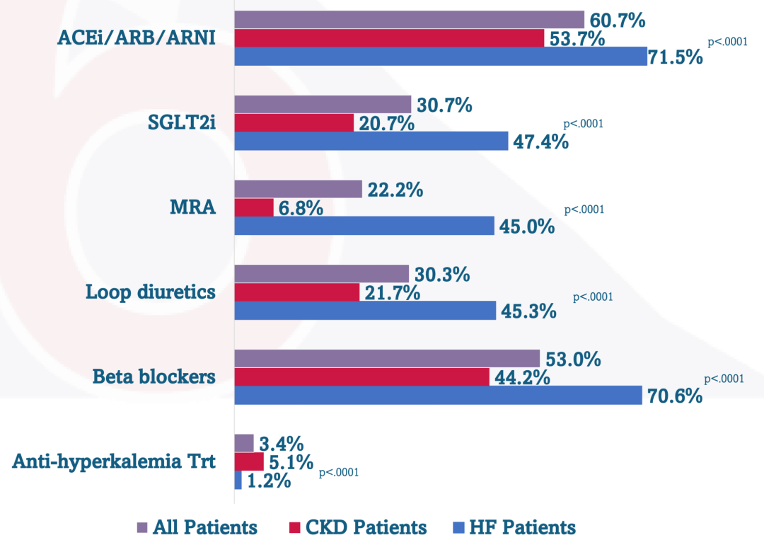 图2. HF患者、CKD患者与总体人群的治疗模式