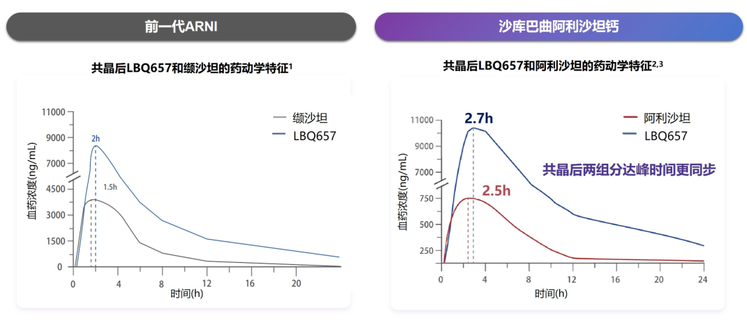 有利于发挥药物协同作用:两种有效成分达峰时间趋同,有利于同时发挥利钠肽的有益作用;