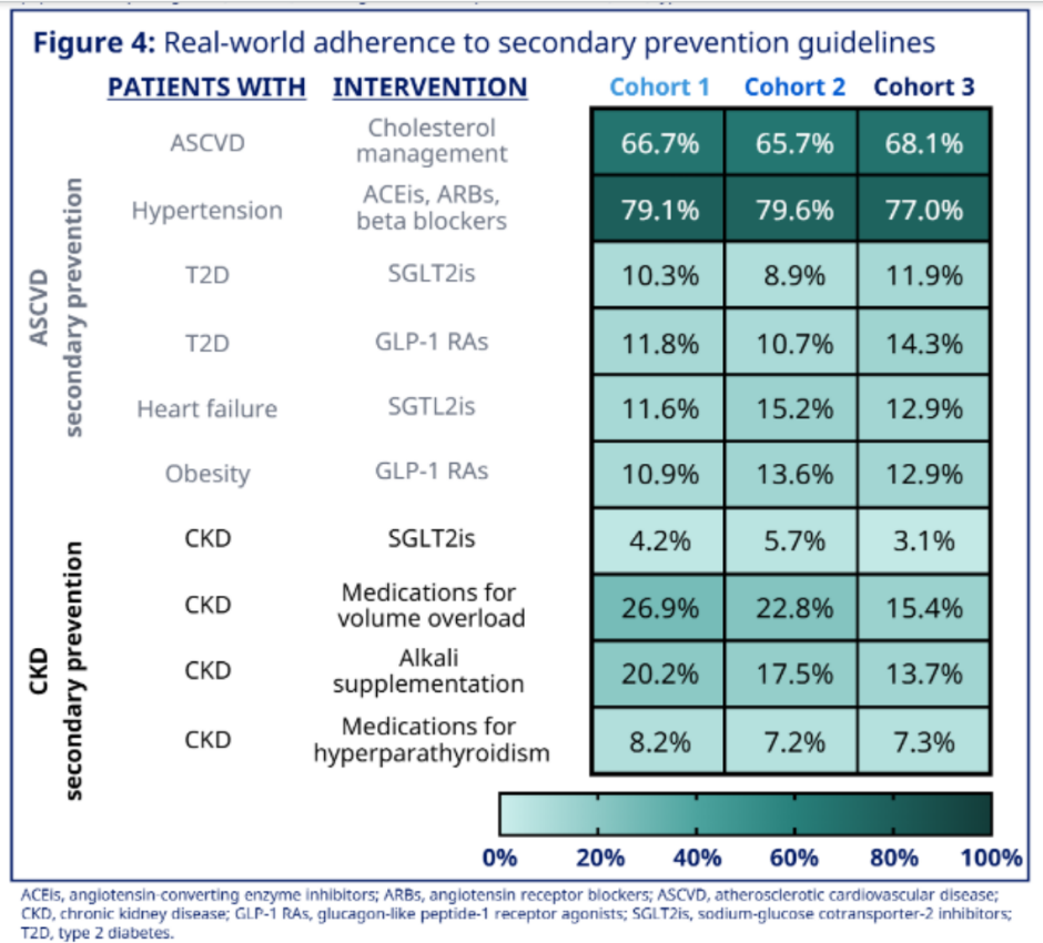 图3.真实世界中对二级预防指南的依从性情况