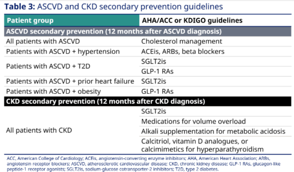 表2.ASCVD和CKD二级预防指南推荐