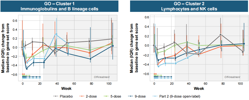 研究结论全血RNAseq从转录组—功能通路—细胞亚群三级层面证实:菲泽妥单抗诱导的基因与细胞变化完全符合其靶向CD38+浆细胞的作用机制,无广泛非特异性免疫抑制,为疗效与安全性提供坚实分子证据。