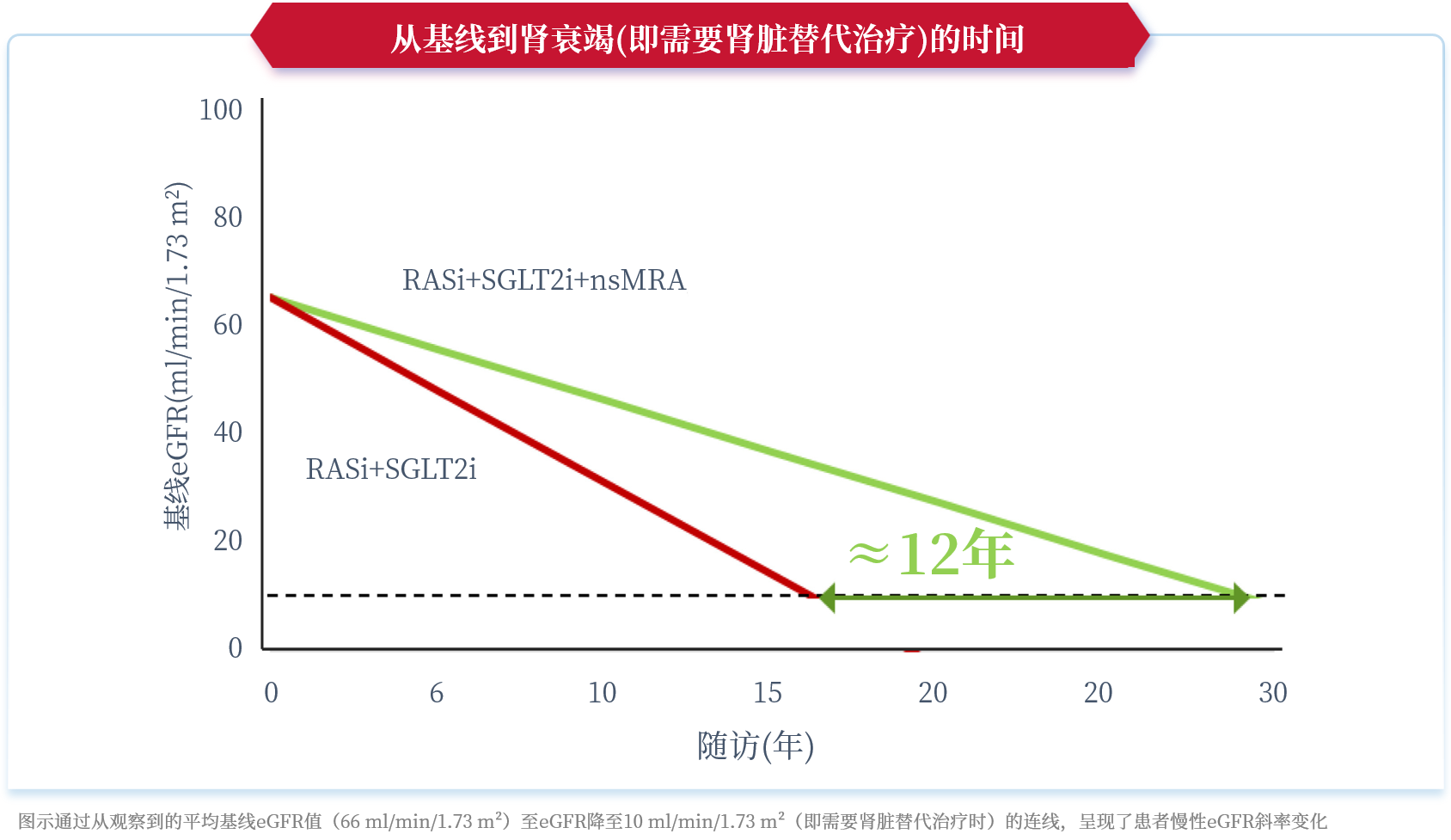 图5. 非奈利酮可将需要肾脏替代治疗的时间推迟约12年