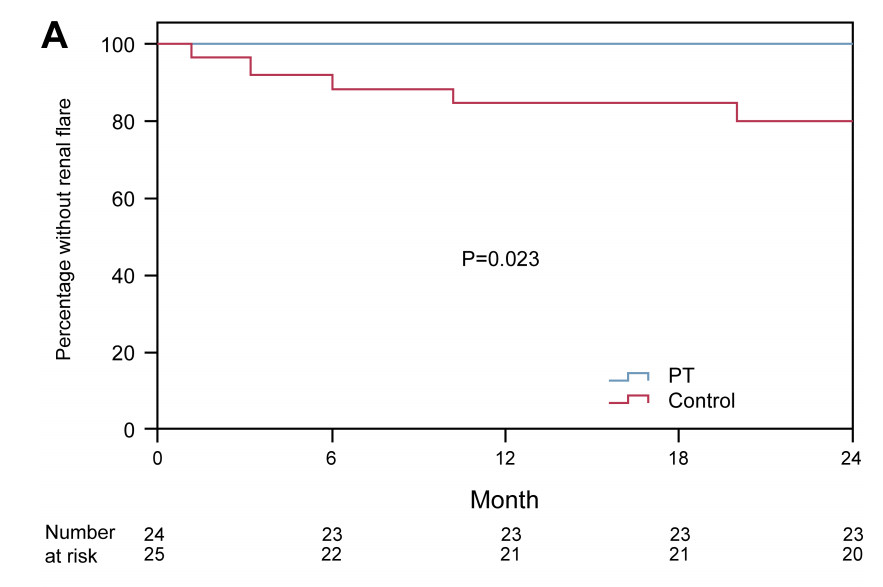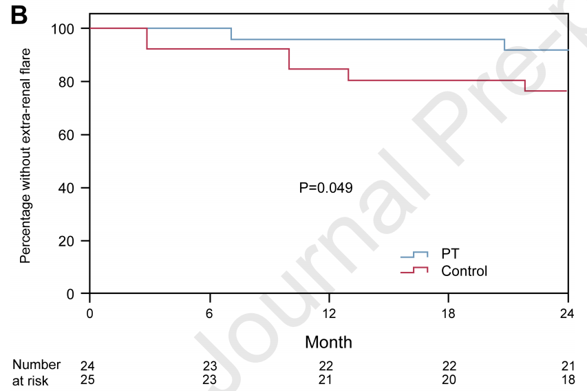 次要终点为24个月无肾外复发生存率、24个月无系统性红斑狼疮临床复发生存率;血清学与肾功能指标变化;不良事件发生率。